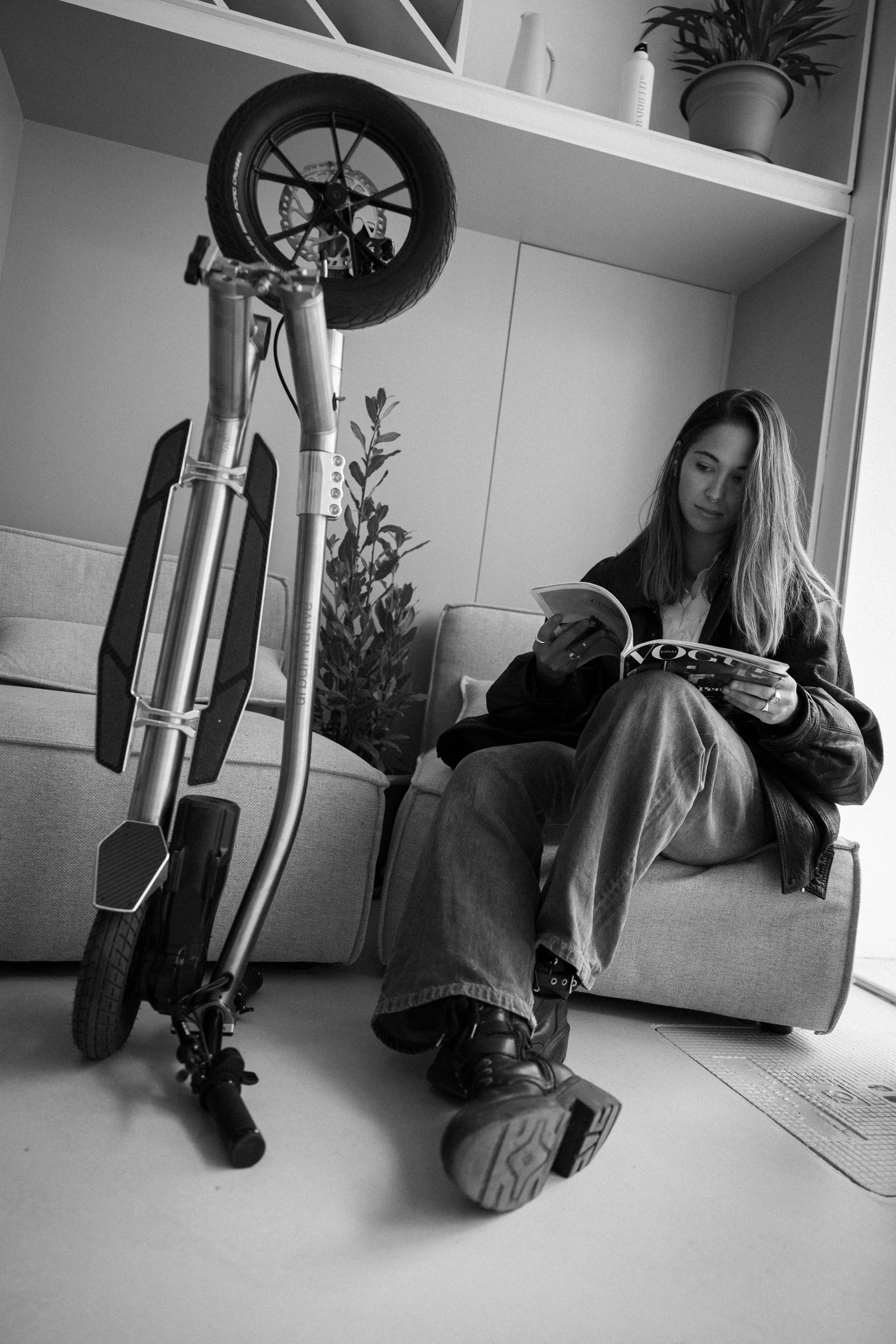 USB-C charging, vertical compact folding, a titanium frame, an ultralight build, a side-mounted motor... we were the first to bring these innovations into a vehicle. Not because it was easy, but because it was necessary: to spark emotion, simplify everyday life, and make every ride a moment of pure joy.